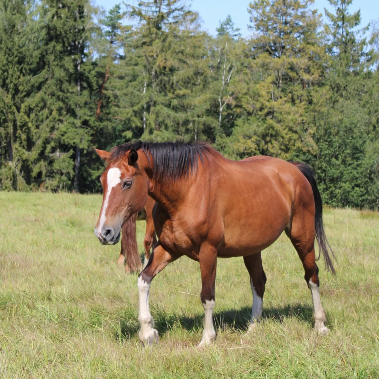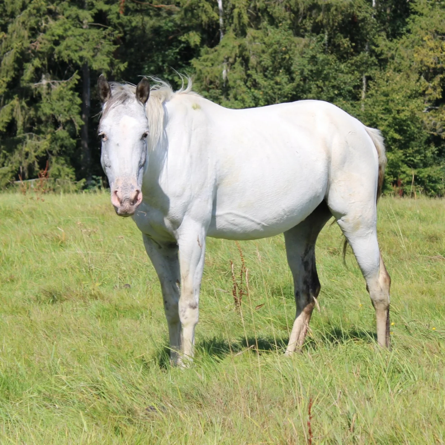 Quater-Hafi Mix, geb 12.04.1997Jonny ist der älteste un der Herde und mit das erste Pferd was auf unseren Hof einzog. Leider musste er durch sein PSSM frühzeitig in Rente geschickt werden. Nun genießt er sein Rentenleben auf der Weide, bei unseren anderen Pferden.