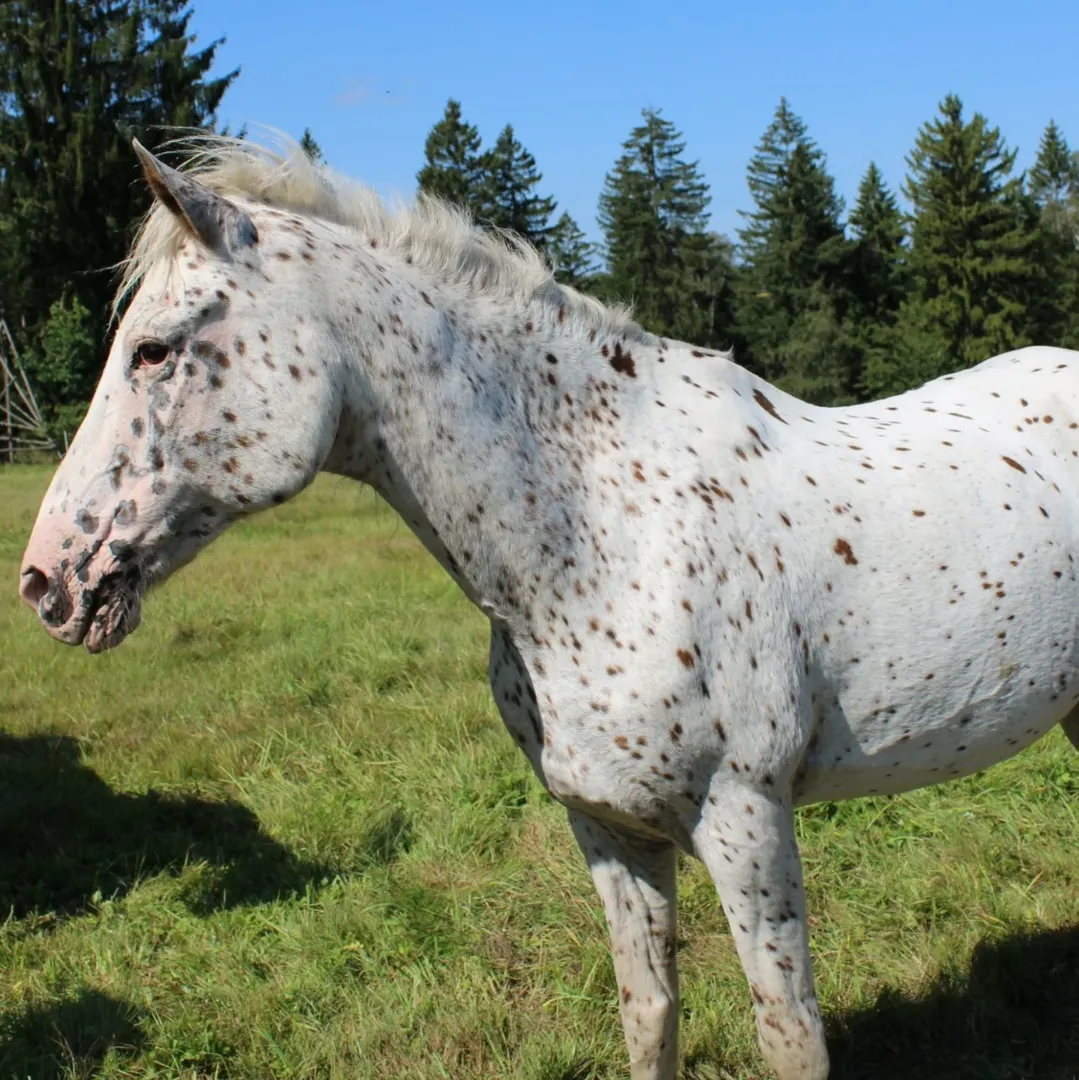 Appaloosa, geb. 30.03.2006Lexa ist sehr umgänglich und einfach zu reiten. Jedoch auch sehr sensibel, besonders auch nach ihrer Erkrankung 2017 wo sie kurz vor dem Tod stand. Wir konnten sie durch zahlreiche Spenden retten.