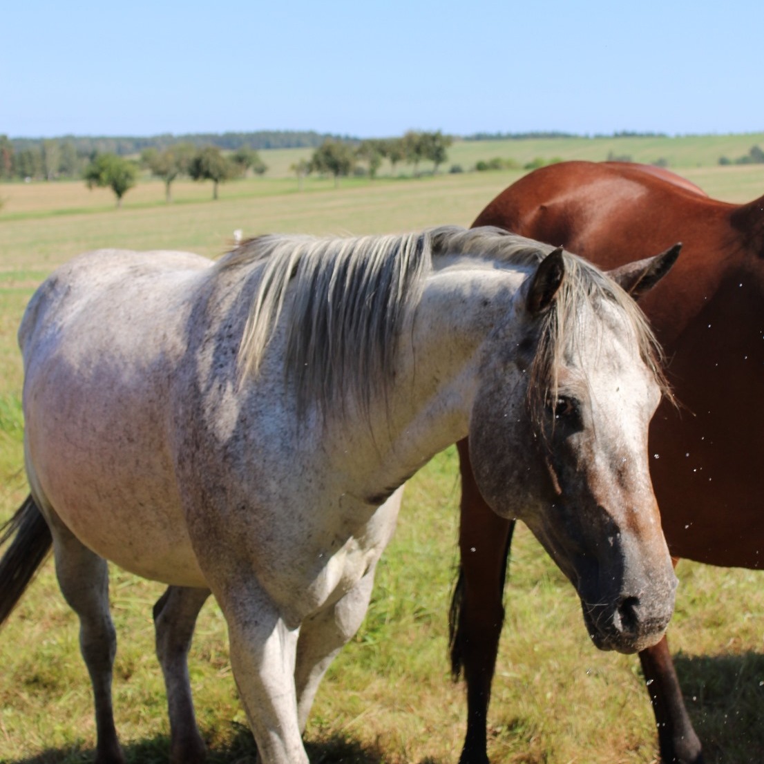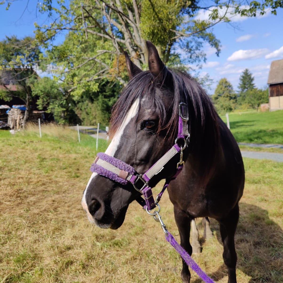 Warmblut, geb. 01.01.2000Unser Herzenspferd, hat ein Herz aus Gold. Therapie-, Voltigier-, Anfängerpferd, die liebste und ruhigste in unserer Herde.